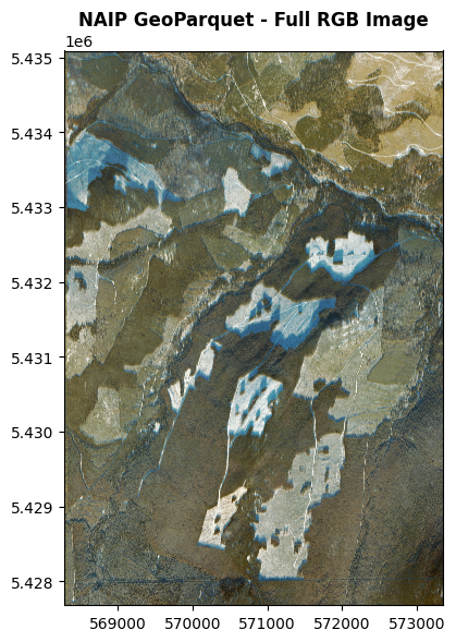 show(src, ax=ax, title="NAIP GeoParquet - Full RGB Image")